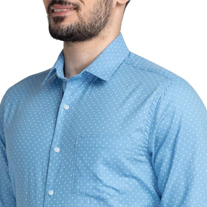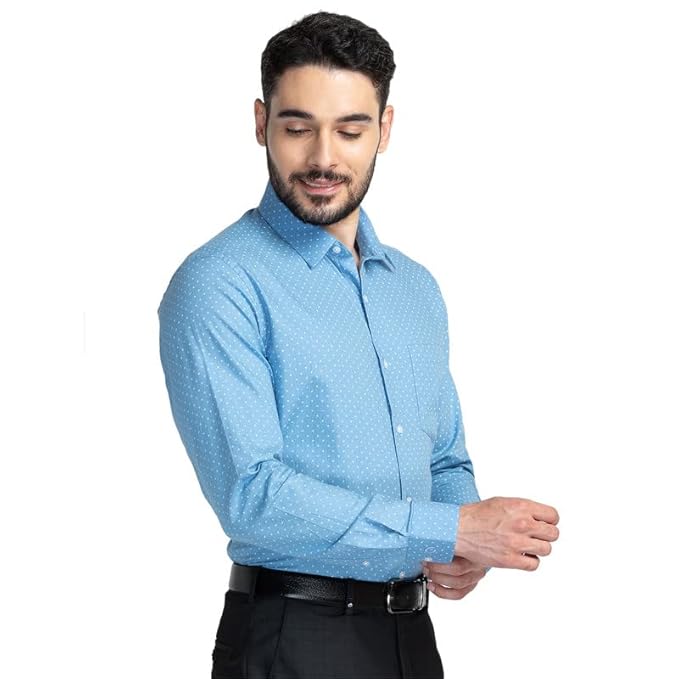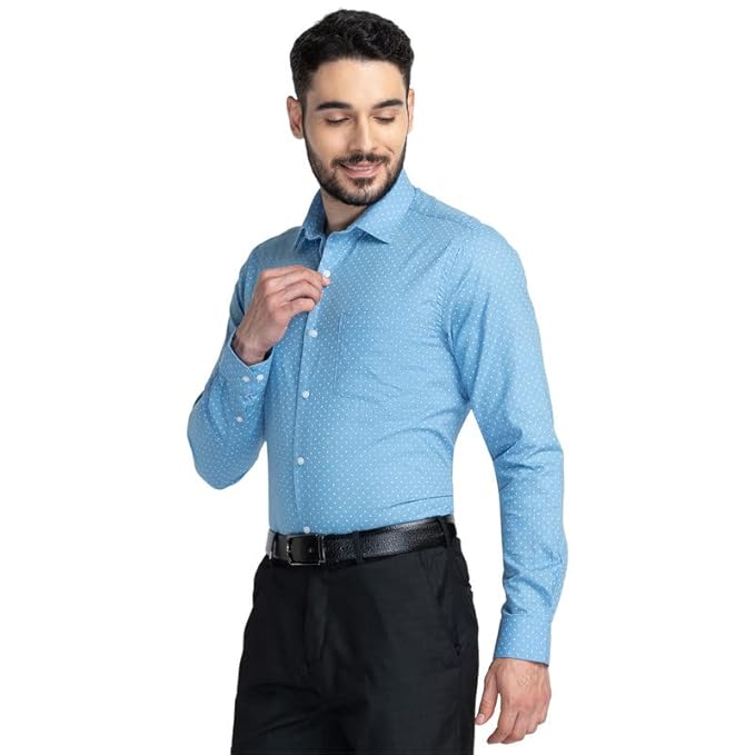 A timeless blue Oxford shirt featuring a tailored fit, crafted from premium cotton for a polished look.