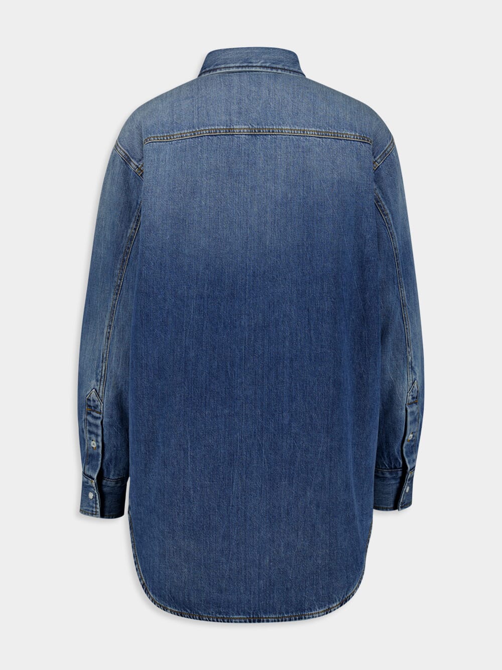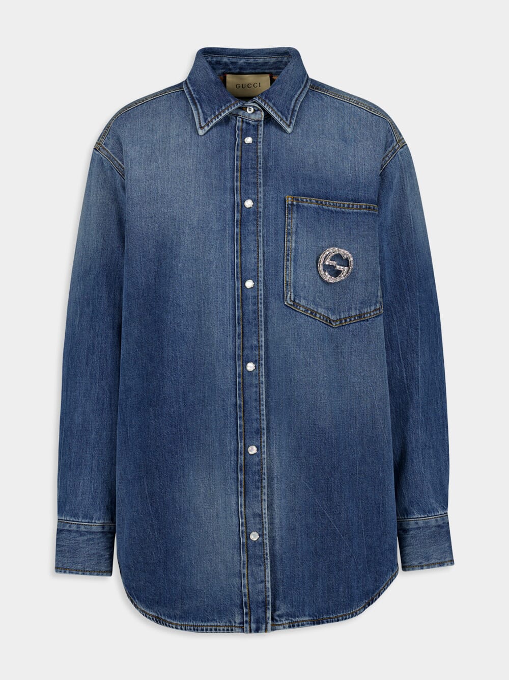 A stylish denim shirt featuring Gucci’s signature embroidered logo and a relaxed fit for everyday wear.