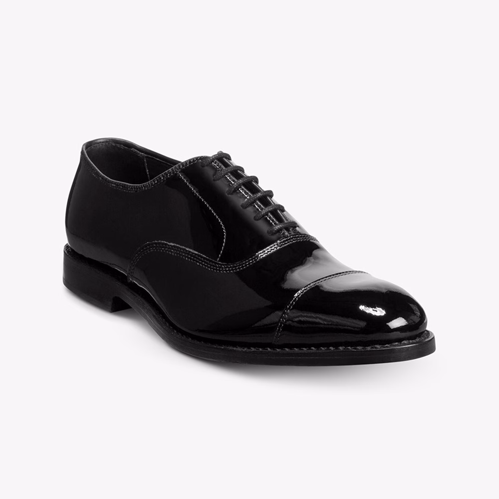 Premium black leather oxford shoes with a cap-toe design, offering both comfort and style.