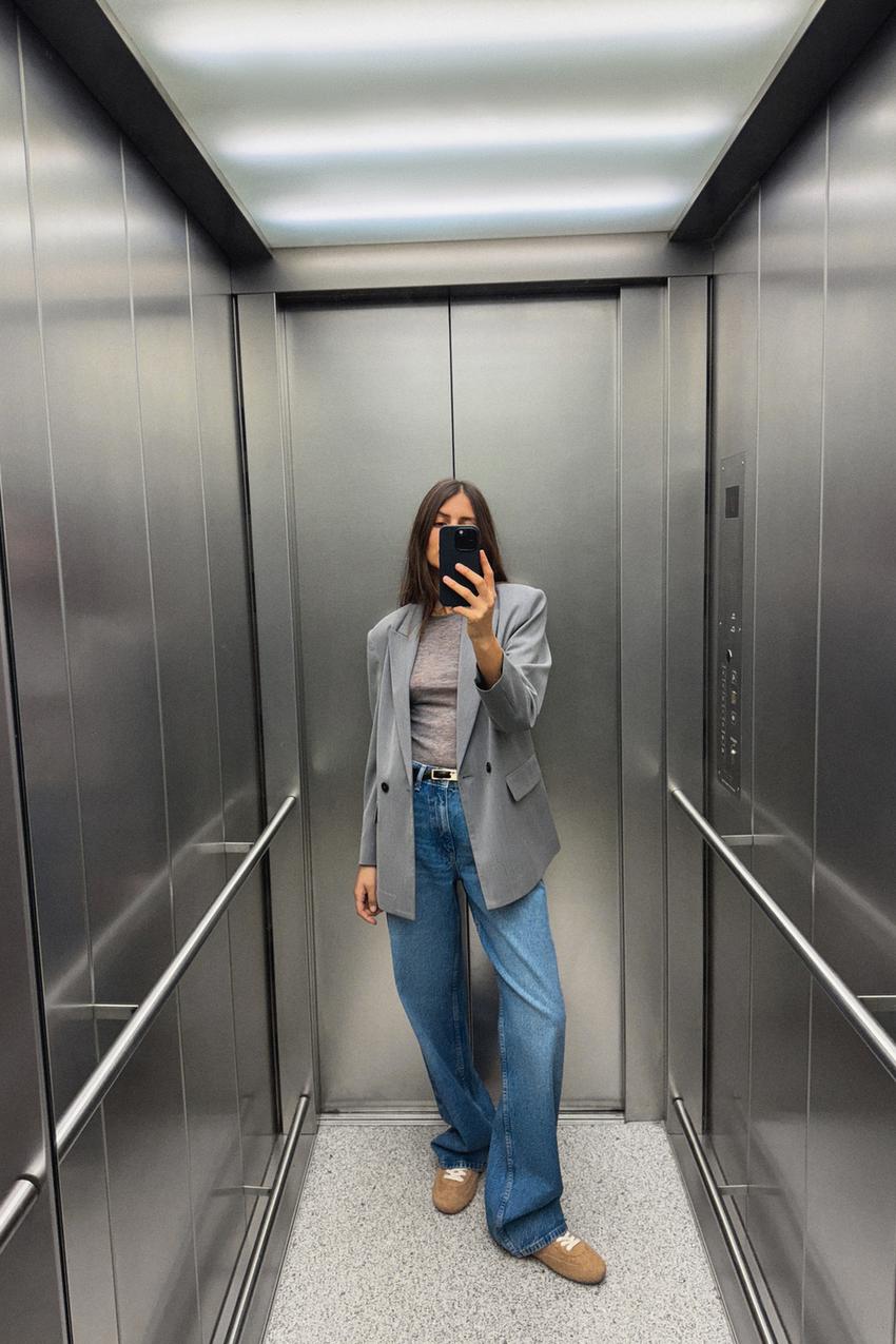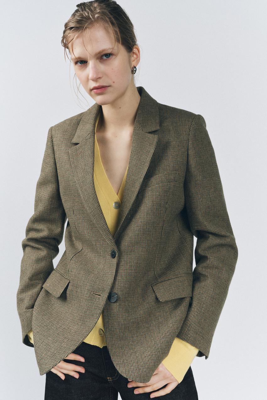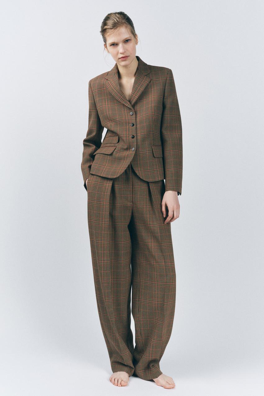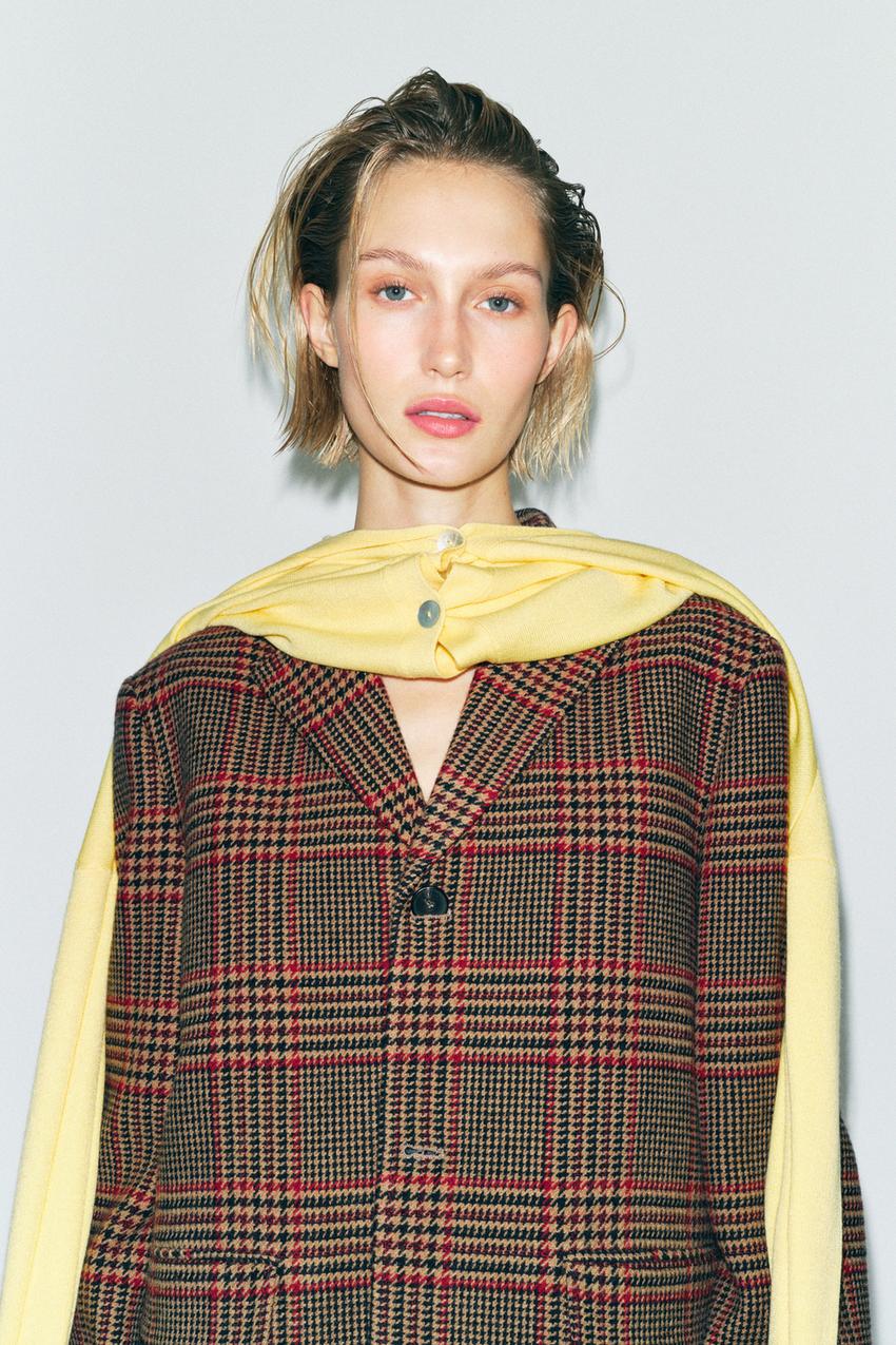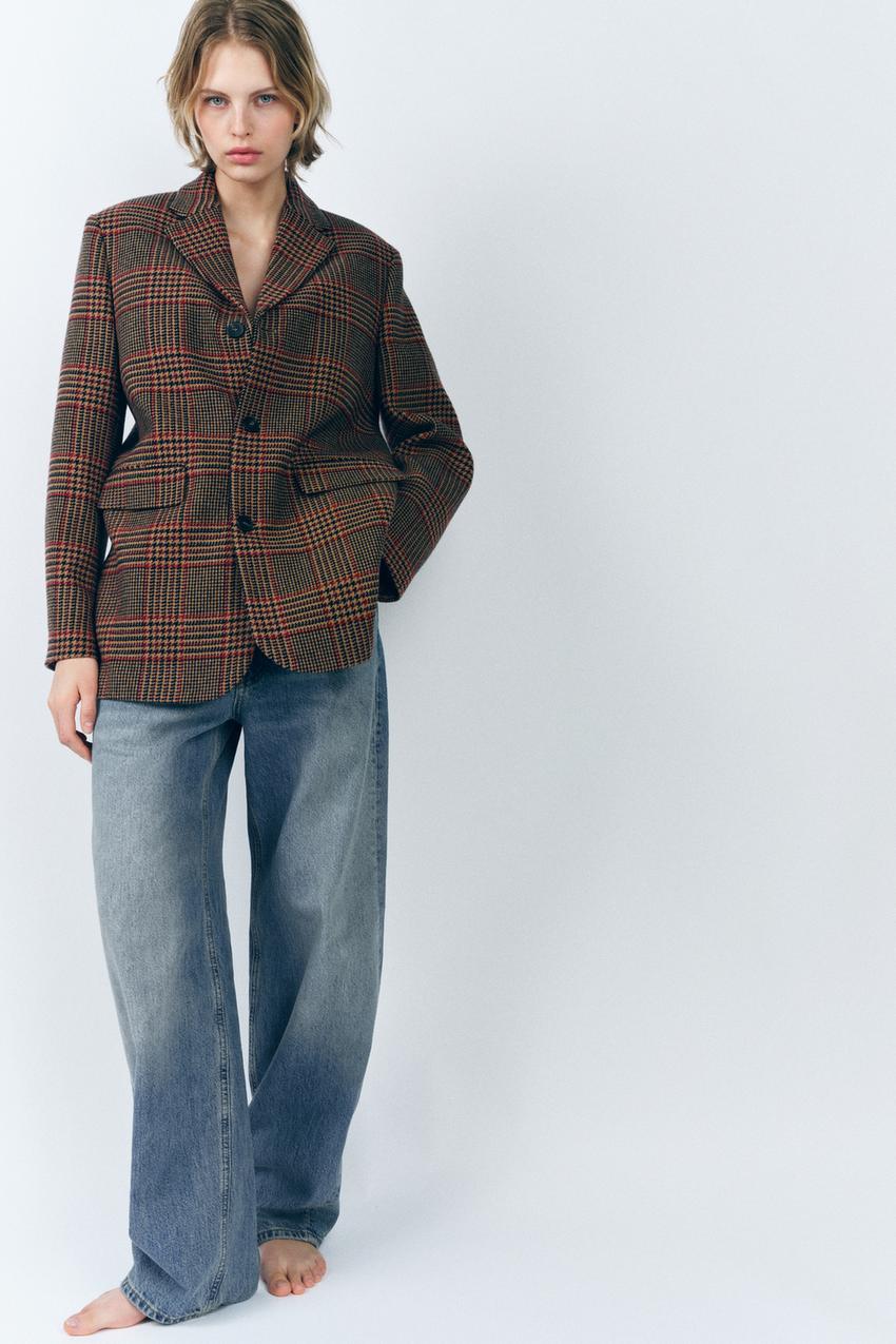Oversized blazer from the latest collection featuring check pattern and gold buttons.